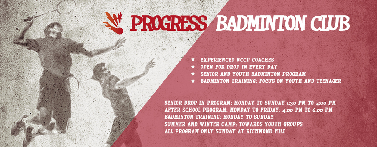 Progress is striving to become the largest and most diversified badminton club in the GTA area and offers various activities for all ages in the community.